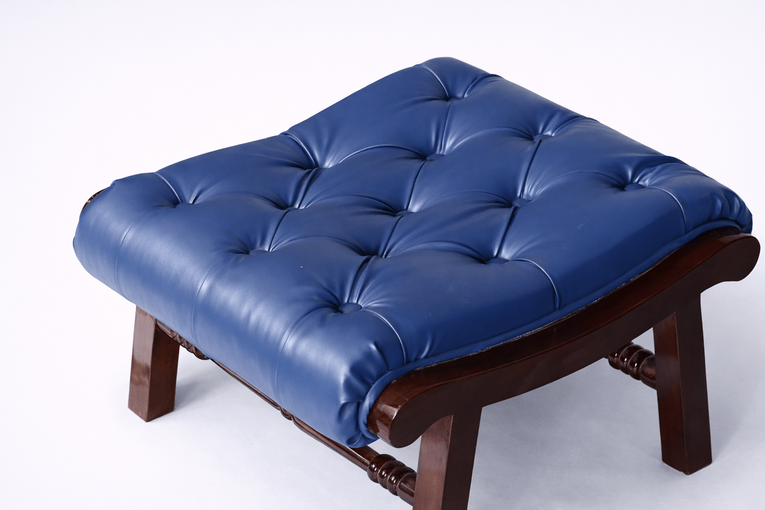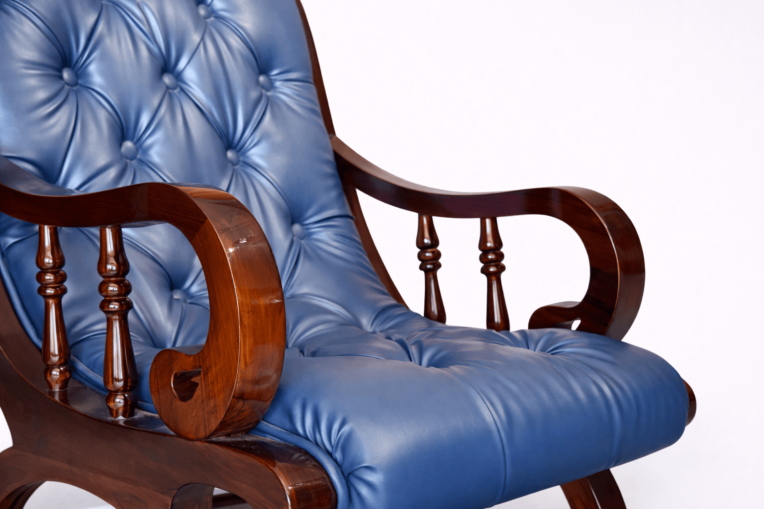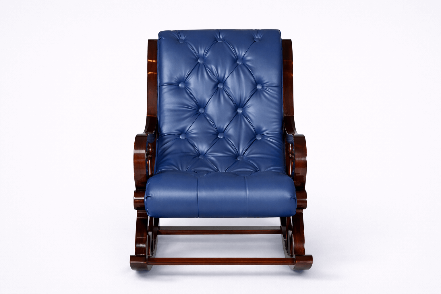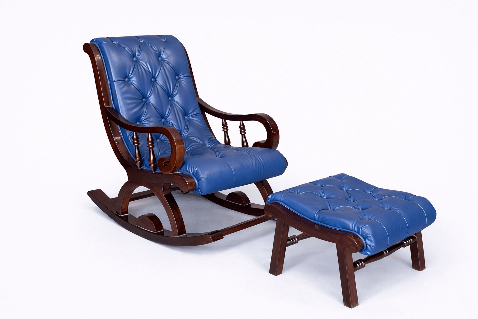 Blue leather rocking chair and ottoman