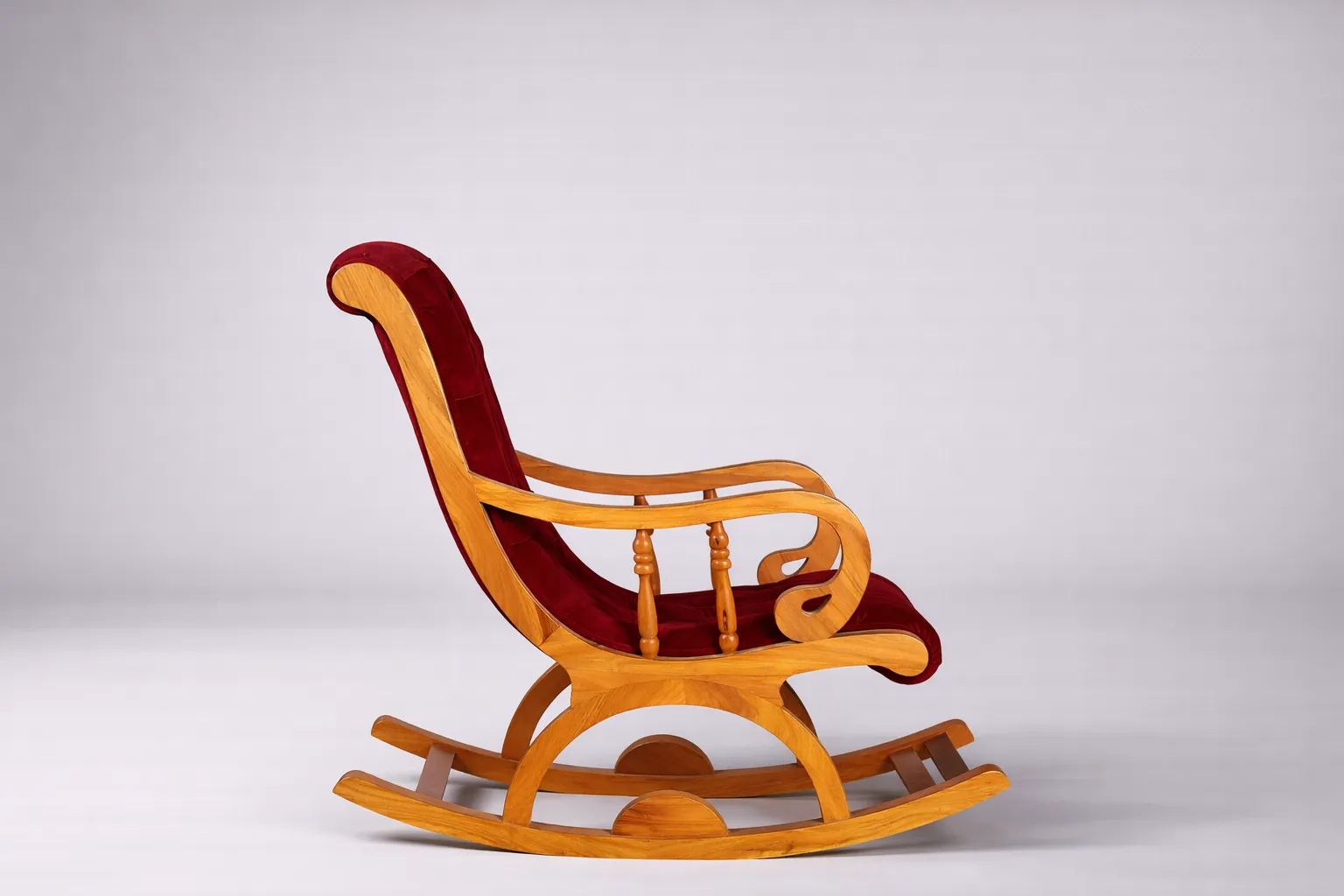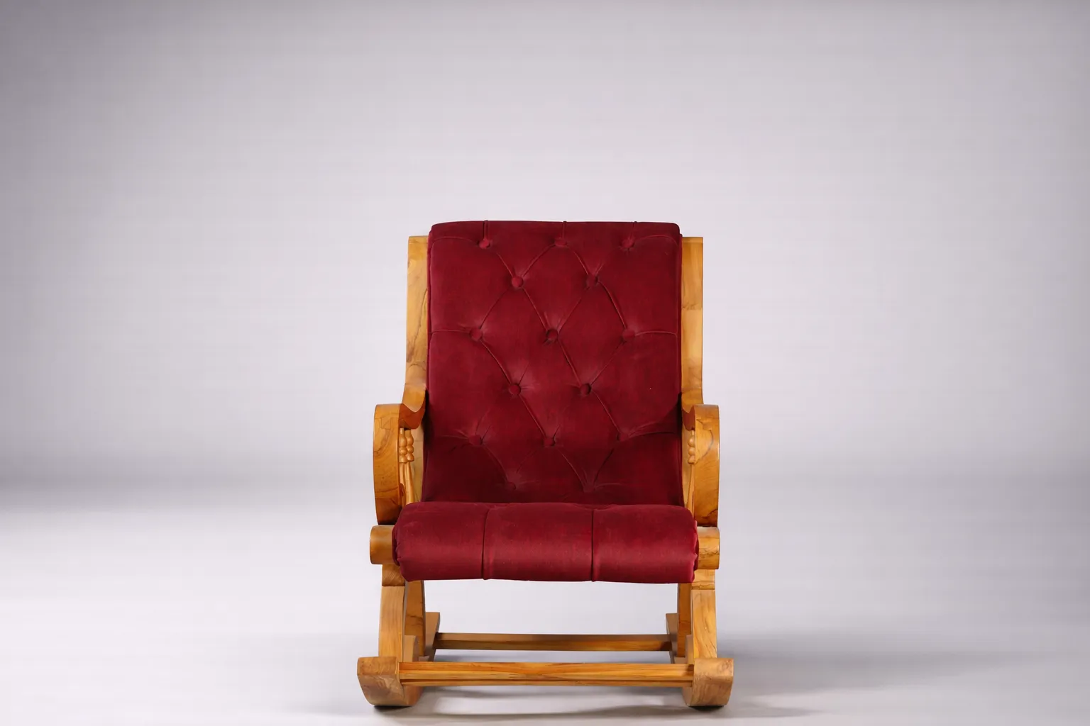 Traditional rocking chair with velvet upholstery